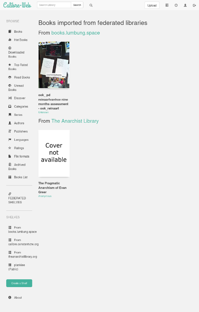 To find out, we developed a very early proof of concept of library federation with OPDS in calibre-web. This work builds on earlier experiments with the Critical Technical Practice project at DARC.