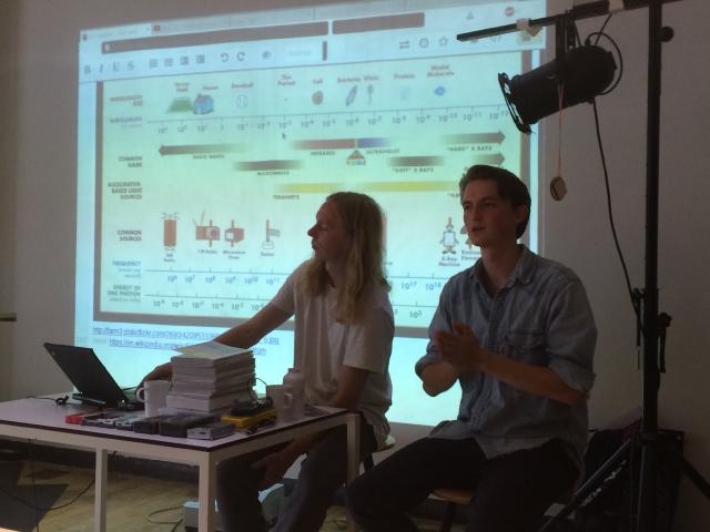 A 4 day workshop at de Waag in the context of the Hackers & Designers Summer Academy. Basic intros in to working with electronics, radio, signal de/modulation, PCB etching etc. Participants developed their own projects based on that. More info & outcomes on hackersanddesigners.nl