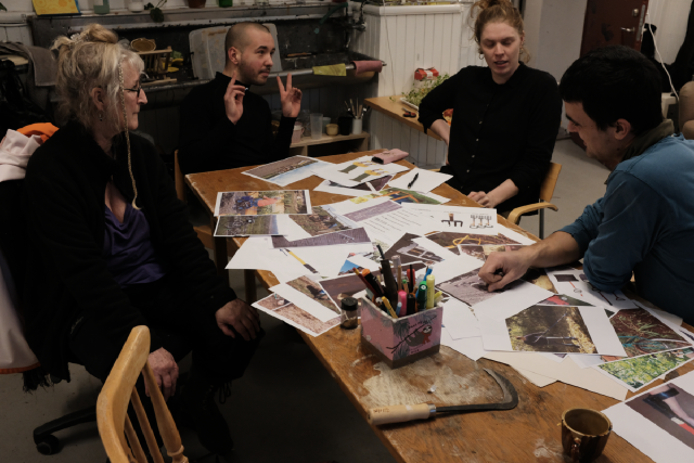 We introduced a large bundle of branches in the workshop as the main building material. This was inspired by historic wood working techniques, in particular those for the craft manufacture of wooden tool handles. The reason for this material was to allow the workshop participants to break away from the metric system and standard dimensions. Instead, working this way required inspecting the different branches carefully and choosing one to work with based on its shape, sturdiness or ergonomic qualities. An additional side effect of introducing branches as a sketching material was that also that it enabled the participants to experiment freely with the material. It did not require advanced skills or precise measuring to make adjustments, which lowered the barrier for participation.